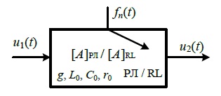 Второй вид дестабилизирующих воздействий влияет на выходную величину u2(t) через изменение первичных параметров рельсовой линии Z = f (g0, L0, r0, C0), где g0 – проводимость изоляции рельсовой линии, L0 – удельная индуктивность, C0 – удельная междурельсовая емкость, r0 – удельное активное сопротивление рельсовой линии. Такие возмущения являются параметрическими fn(t) (рис. 5).