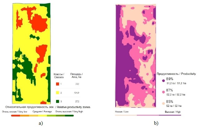 Fig. 1. Zones of the experimental field: a) integral; b) productivity