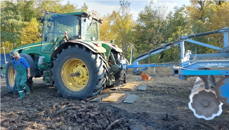 – дискование стерни (трактор John Deere 9520 и дисковая борона John Deere-650 (2.10.2021 г.): шины не участвовали в эксперименте);