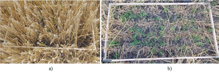Fig. 14. Treatment results after cutting the stems: a) along the trail; b) outside the trail