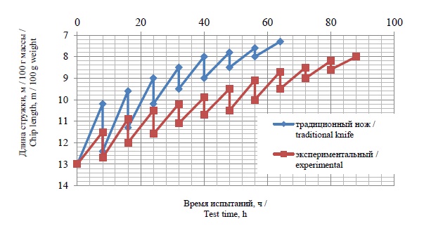 в эксплуатационных условиях для традиционного и экспериментального ножей