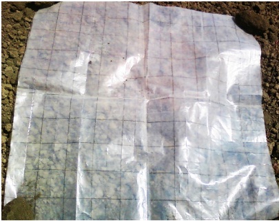 Количество пожнивных и растительных остатков определялось по их массе после прохода рабочих органов в сравнении с исходным числом. Для этого на поверхность почвы укладывается рамка или палетка 0,5 × 0,5 м2, с указанной площади собирается стерня на поверхности (рис. 3).
