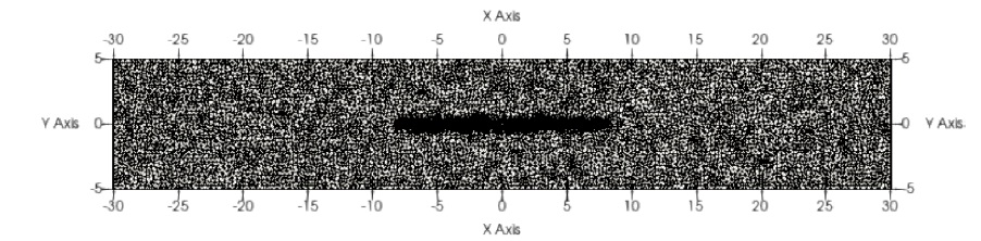 На рисунке 1 представлена расчетная сетка для описанной задачи. Вдоль трещины наблюдается заметное сгущение сетки. Расчетная сетка содержит 36 339 ячеек основной неструктурированной сетки.