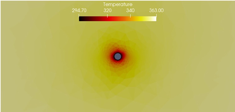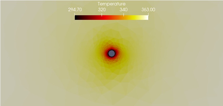 Описанный вычислительный алгоритм был реализован в виде программного пакета для расчета динамики изменения температуры и давления в нефтеносном пласте. Для сокращения времени расчетов была использована технология параллельных вычислений MPI.