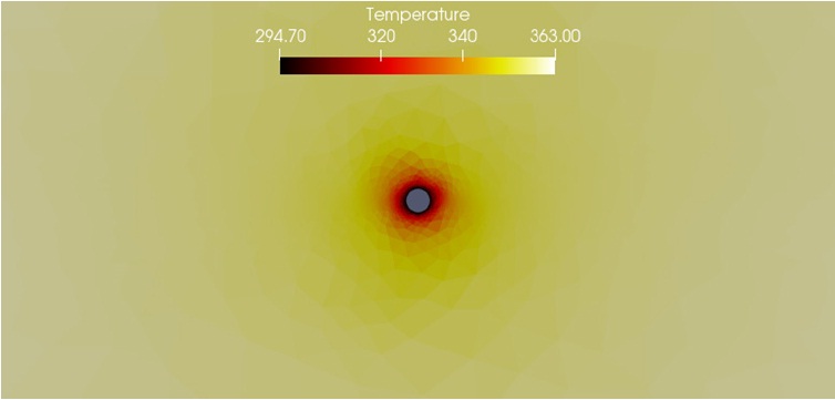Introduction. In this article, the problem of temperature distribution in an oil-bearing formation with a hydraulic fracture and a vertical injection well is numerically modeled.