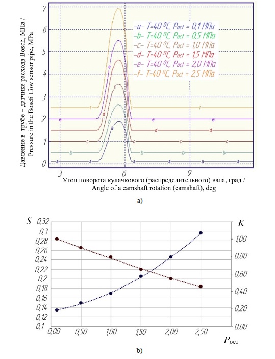 temperature: a) graphs of the pressure change in the injection adapter when the fuel temperature changes