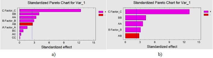 b) after excluding insignificant regression coefficients