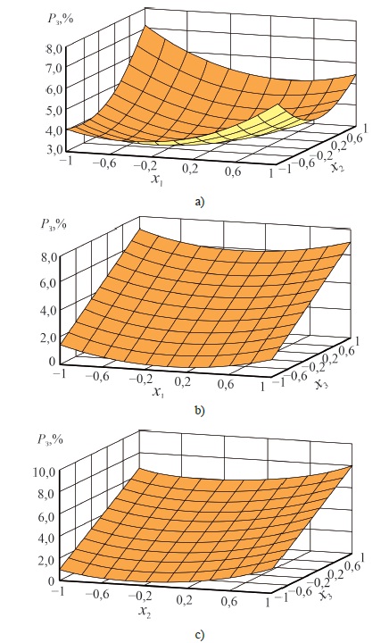 Fig. 3. Response surfaces characterizing the fraction РЗ (Var_1) of grains, which