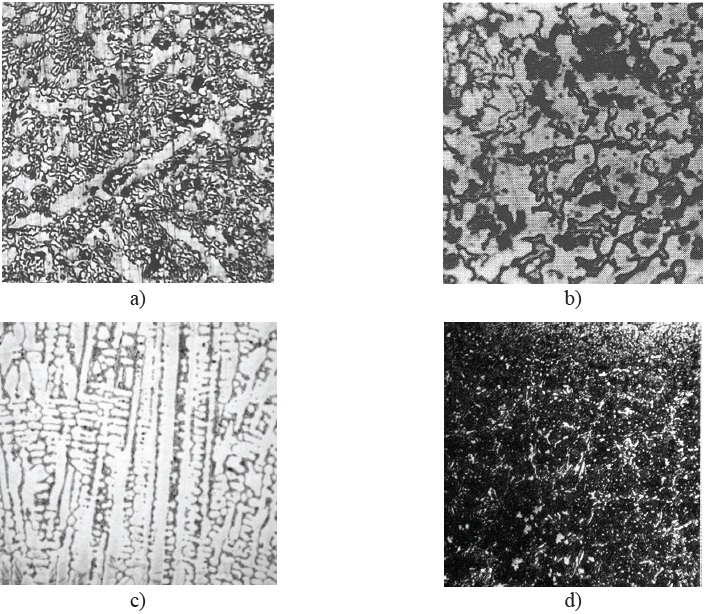 Наплавка электродами Т-590 и порошковой проволокой ПП-Нп200Х15С1ГРТ обеспечивает наплавленный металл, содержащий в качестве упрочняющей фазы карбиды и карбобориды (рис. 3a, 3c).