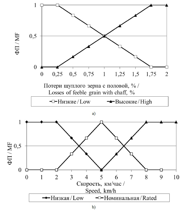 Комбайн относится к многоуровневым иерархическим системам, функционирующим в меняющихся внешних условиях. Экспертная информация о внешних условиях, а также о взаимосвязях этих условий и регулируемых параметров комбайна носит нечеткий характер. Очевидно, что для описания таких систем использование традиционных математических подходов, таких как регрессионные модели [7–9], экспериментально˗статистические методы [1; 10], малоэффективно в силу того, что получающиеся в них громоздкие математические конструкции сложно или даже невозможно оптимизировать. Помимо этого, нужно отметить еще два существенных ограничения для использования подобных подходов. Во˗первых, регрессионные модели применимы только в рассматриваемом диапазоне параметров модели; во-вторых, решения об изменении значений параметров должны приниматься оперативно в полевых условиях на основе большого числа внешних факторов, которые не учитываются в модели.