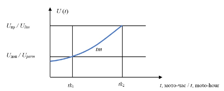U(t) – parameter change U(t) in time t, moto-hour; Ulim and Uperm – limit and permissible value of the