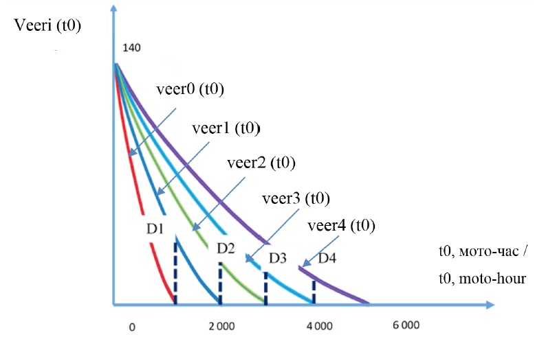 D1...D4 – tolerance system, mm3/cycle; t0 – work, moto-hour