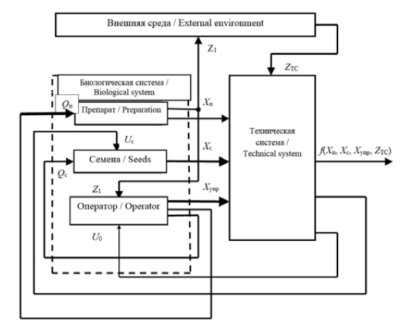 В процессе предпосевной обработки семян между объектами биотехнической системы существует взаимосвязь, которую можно представить в виде блок-схемы (рис. 1).