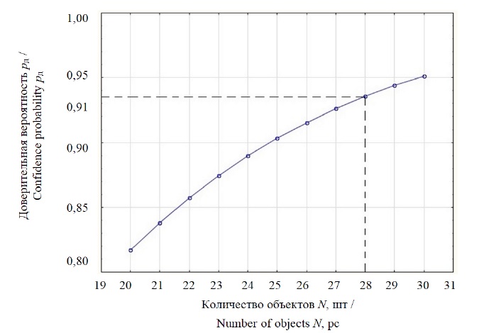 4. Fig. 3. Graph of the dependence of the number of objects N on the one-way confidence probability of the hi–square criterion