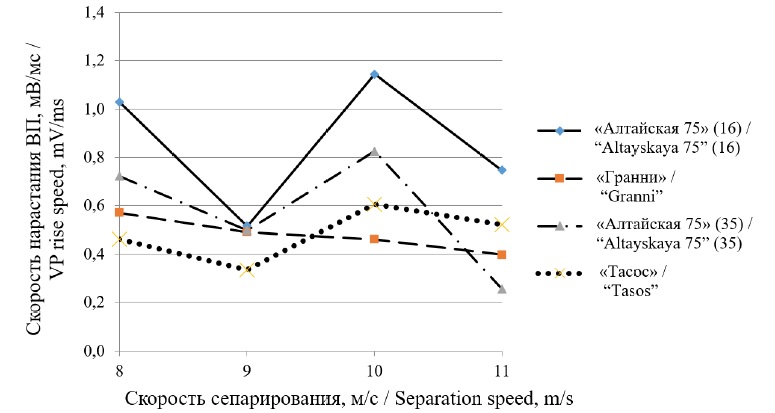 8. Fig. 7. Changes in the VP rise speed depending on the wheat variety at a given separation speed