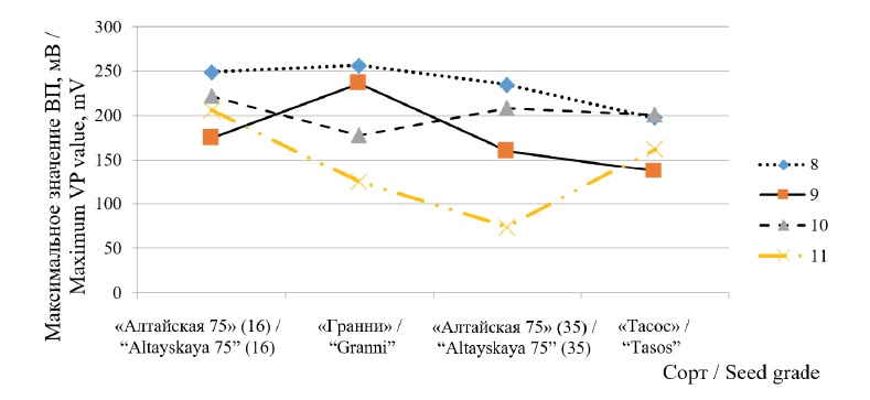 12. Fig. 11. Changes in the maximum VP value depending on the wheat variety