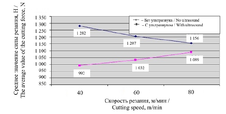 Для оценки полученных результатов экспериментальных исследований значения измеряемых параметров выбирались таким образом, чтобы серединой была зона перехода от традиционного резания к ультразвуковому.