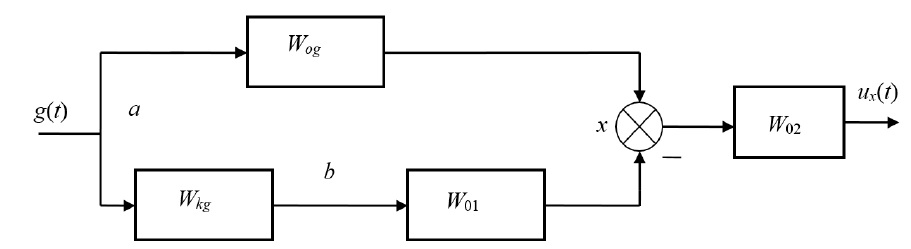 На рис. 2 один канал передачи возмущения воздействия g(t) посредством звена Wog(p) – физический, а второй канал необходимо создать искусственно через компаундирующее звено Wkg(p), которое мы ввели ранее в уравнение передачи возмущения.