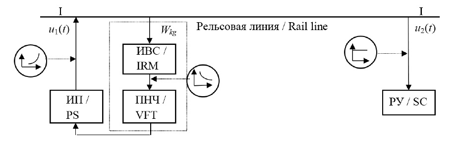В РЛ с распределенными параметрами измерить основной возмущающий фактор – проводимость изоляции – затруднительно, поэтому в статье реакция системы на изменение проводимости изоляции определяется посредством измерения входного сопротивления РЛ. В классе нормального режима оно зависит от проводимости изоляции; в классе шунтового режима – от проводимости изоляции РЛ и координаты нахождения полезного воздействия – сопротивления поездного шунта; в классе контрольного режима – от проводимости изоляции и величины эквивалентного сопротивления места обрыва РЛ [25]. Во всех классах состояний присутствует проводимость изоляции, поэтому с помощью измерителя входного сопротивления и преобразователя напряжения в частоту на управляющем входе источника питания формируется управляющий сигнал Z'k, зависящий от величины проводимости изоляции. Чем выше проводимость, тем больший сигнал подается на вход РЛ для компенсации снижения уровня сигнала в РЛ вследствие затухания из-за проводимости изоляции. Допускается увеличение входного напряжения до некоторого критического уровня проводимости изоляции, при превышении которого происходит снижение напряжения на входе РЛ. Так обеспечивается инвариантность к возмущающим воздействиям в РЛ в классе нормального режима.