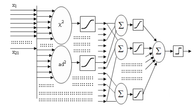 Fig. 5. Generalizing a large number of statistical criteria by a multilayered network of artificial neurons