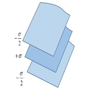 - Графен представляет собой двумерную плоскость с поверхностной плотностью заряда +σ. Сверху и снизу кристалла расположены плоскости, состоящие из электронов с зарядовой плотностью ‒σ/2 (рис. 3).
