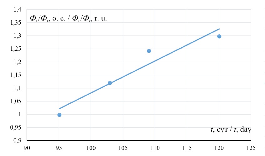 Срок /Duration | t, сут /t, day | Φs, о. е. /Фs, r. u. | Φl, о. е. /Фl, r. u. | Φs/Φl о. е. /Фs/Фl, r. u. |