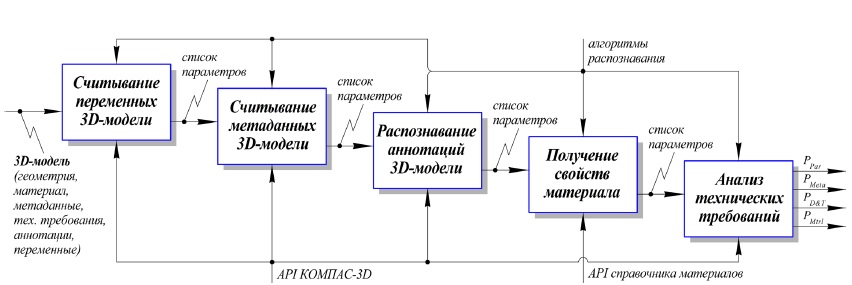 где PPar – множество параметрических переменных 3D-модели; PMeta – множество метаданных 3D-модели; PD&T – множество параметров аннотаций (размеры, допуски, шероховатости поверхностей, обозначение D&T от англ. dimensions and tolerances); PMtrl – свойства материала (твердость, показатели обрабатываемости).