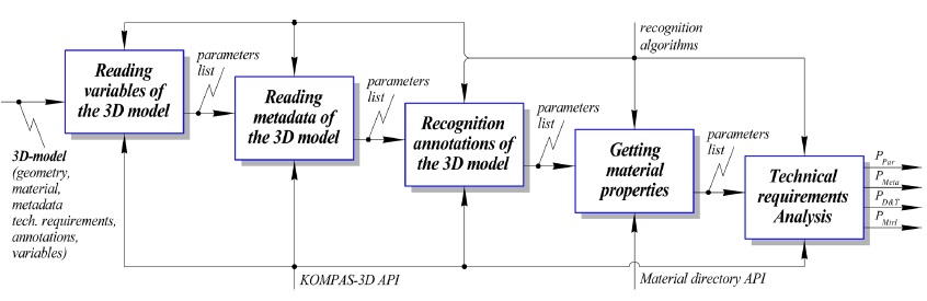 В контексте CAD/CAM-интеграции выделяют две задачи: распознавание конструкторско-технологических элементов (задача feature recognition [8–10]) и получение негеометрических параметров детали (задача technical information processing [11–13]). Задача feature recognition представляет собой отдельную сложную тему и выходит за рамки настоящей публикации. Целью данной работы является получение негеометрических (инженерных) параметров детали, числовые значения которых в дальнейшем могут использоваться в составе параметрических расчетов, а текстовые значения передаваться в управляющую программу.