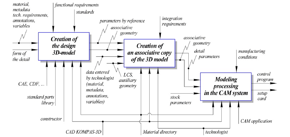 Автоматизация получения конструкторских параметров обрабатываемой детали является важнейшим этапом интеграции конструкторских систем автоматизированного проектирования (САПР) с системами технологической подготовки производства. Она позволяет свести к минимуму или полностью исключить повторный ввод информации и обеспечить сквозную передачу данных по цепочке «конструкторская 3D-модель» ‒ «программирование обработки» ‒ «изготовление на станке с ЧПУ» (CAD-CAM-CNC).