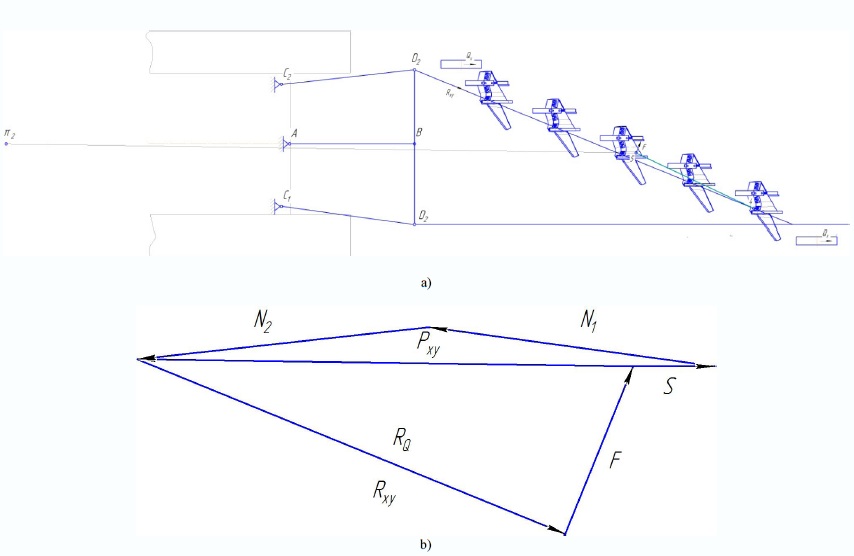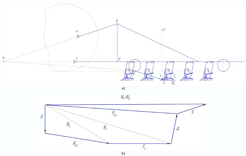 Discussion and Conclusion. According to the results, it is noteworthy that modern agricultural machines are multi-operation statically indeterminate systems. As a result, the process of their regulation during operation is complicated and it is practically impossible to make power calculations without accepting additional conditions. For simplification, accuracy and most visual representations, the problem was solved by analyzing closed force polygons, the construction method of which is presented for both the equilibrium conditions in horizontal and vertical planes.