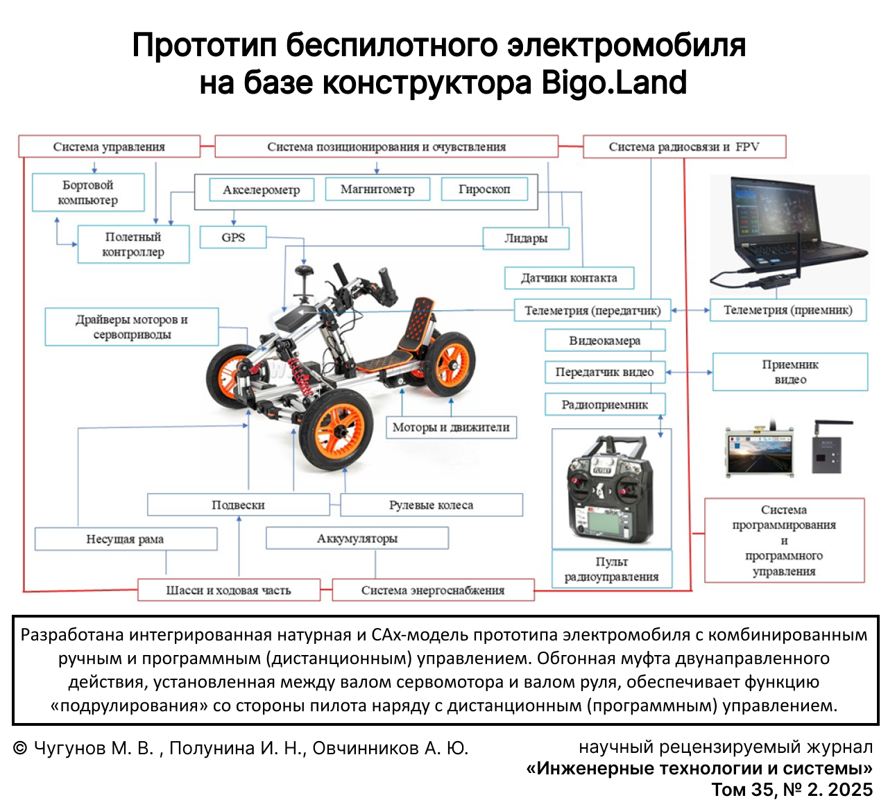 Aim of the Study. The study is aimed at developing and implementing a design decision for an electric vehicle prototype with a combined control system in manual, remote (by radio) and unmanned mode that allows the pilot to easily and safely change the control mode.