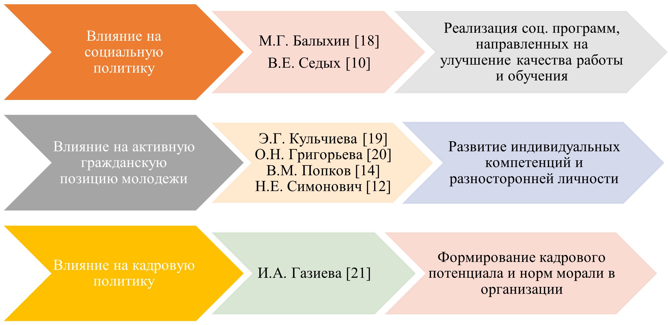 Рис. 1. Направления влияния молодёжной политики, выделенные отечественными исследователями
