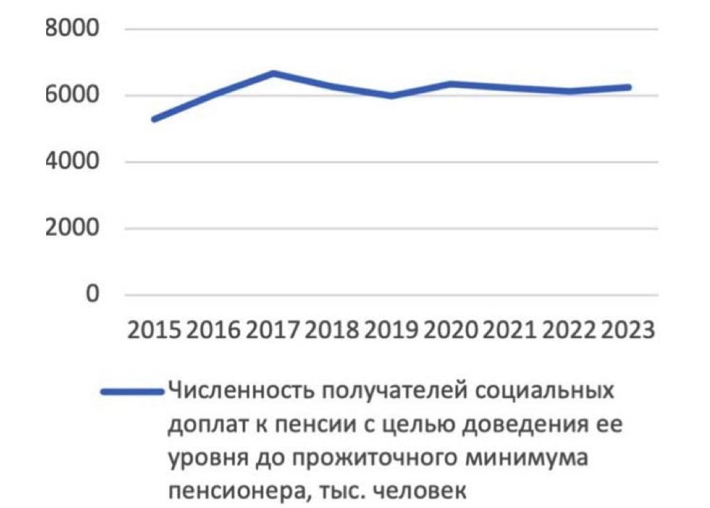 Fig. 3. Dynamics of the number of recipients of social supplements to the old-age pension in order to bring it to the subsistence level in the Russian Federation in 2015–2023