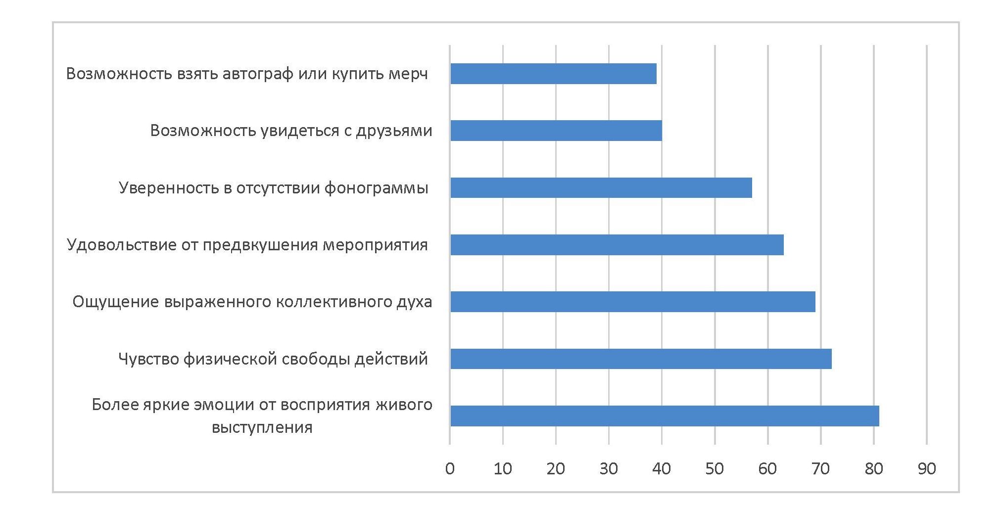 Рис. 1. Мнение респондентов о преимуществах офлайн-концертов, % от общего числа опрошенных, предпочитающих офлайн-формат концертов