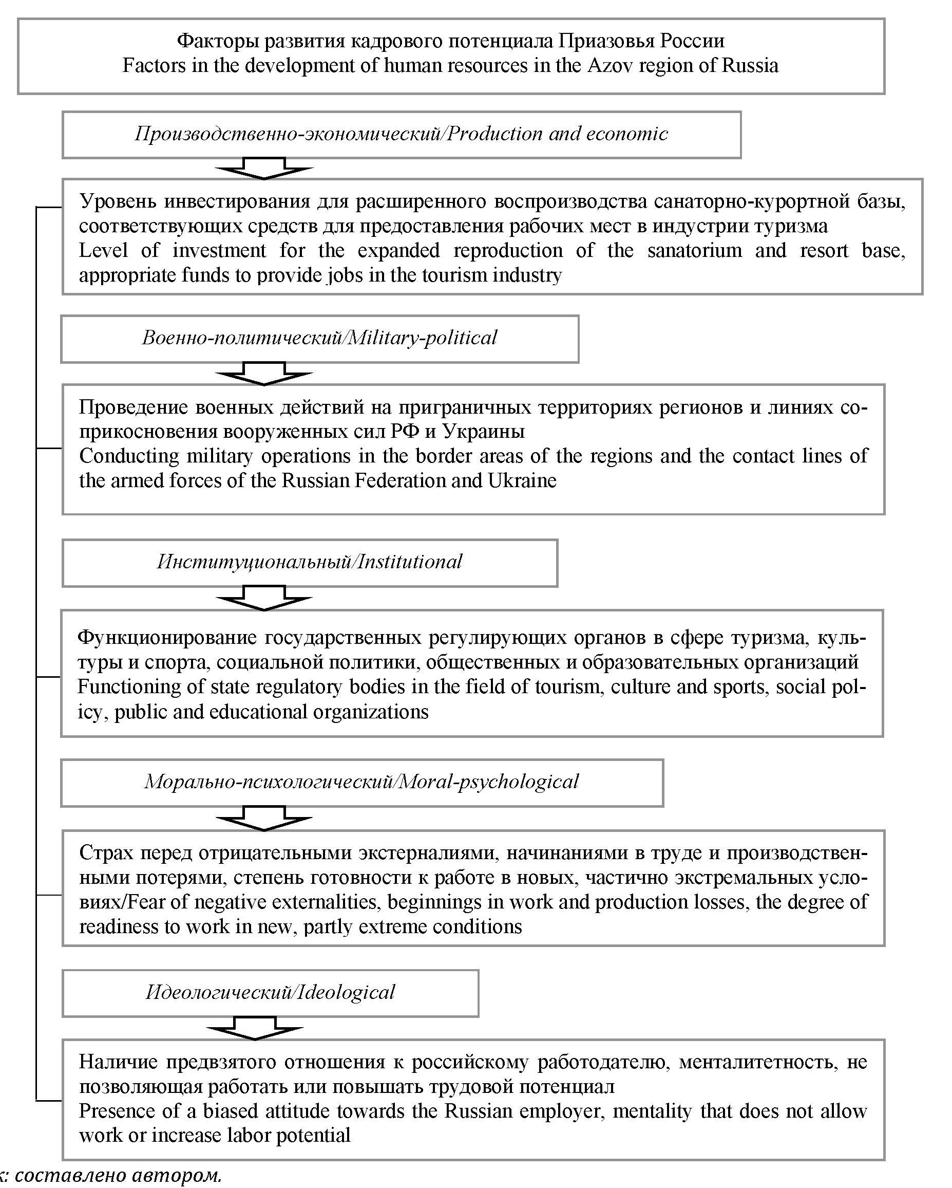 Fig. 1. The main groups of factors determining the formation of human resources in the tourism region of the Azov region of Russia
