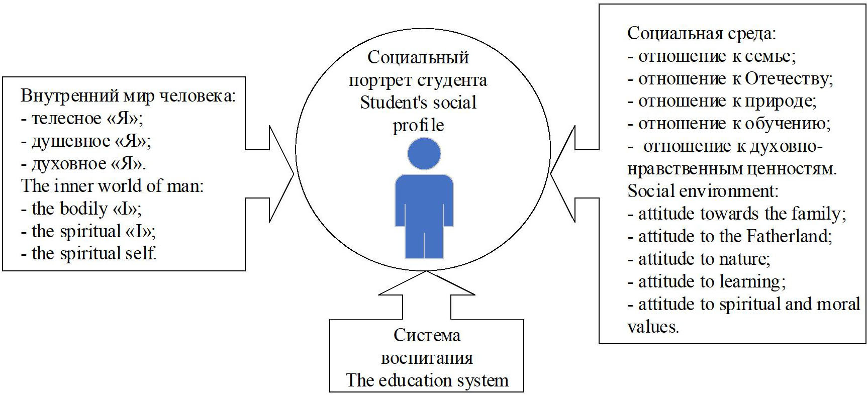 Изучение типичных характерных черт современного студента и особенностей его отношений с внешним миром осуществляется через конструкт социального портрета, в основе которого лежит идея чешского ученого Й. Шванцара [7]. В соответствии с его концепцией развитие и формирование личности является результатом взаимодействия ее внутреннего мира, социальной среды и процесса воспитания. При этом нельзя абсолютизировать влияние какой-то одной составляющей.