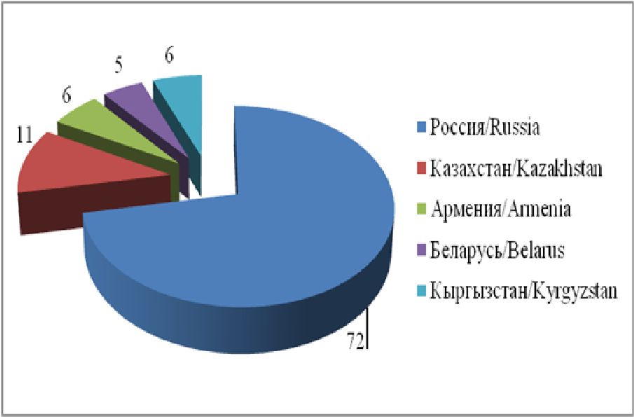 Отдельного внимания заслуживает создание и функционирование ассоциаций образовательных структур стран-участниц, которые не только ведут активный диалог внутри своих образований, но и выходят с предложениями на наднациональный уровень, что также способствует интеграции научного и образовательного пространства ЕАЭС. В качестве примеров можно назвать функционирование Евразийской ассоциации университетов [2], Славянских университетов [3], научно-образовательного консорциума «Евразийский сетевой университет» [4]. Поскольку пространство ЕАЭС является асимметричным объединением, в котором доминирует Российская Федерация по территории, населению, производственному и научно-техническому потенциалу, уровню развития науки и образования, российская система образования призвана сыграть важнейшую роль в формировании единого евразийского научно-образовательного пространства.