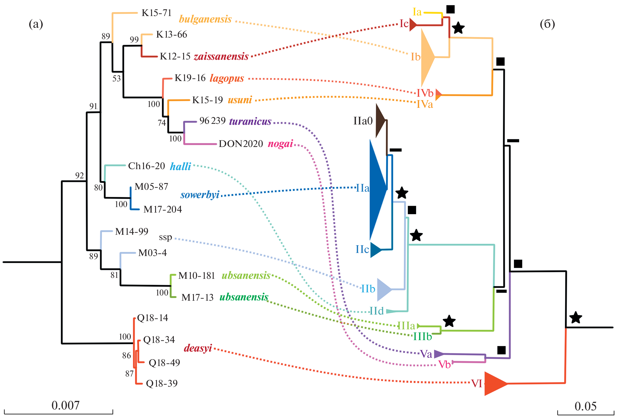 Филогения видового комплекса Dipus sagitta по результатам секвенирования ядерных генов