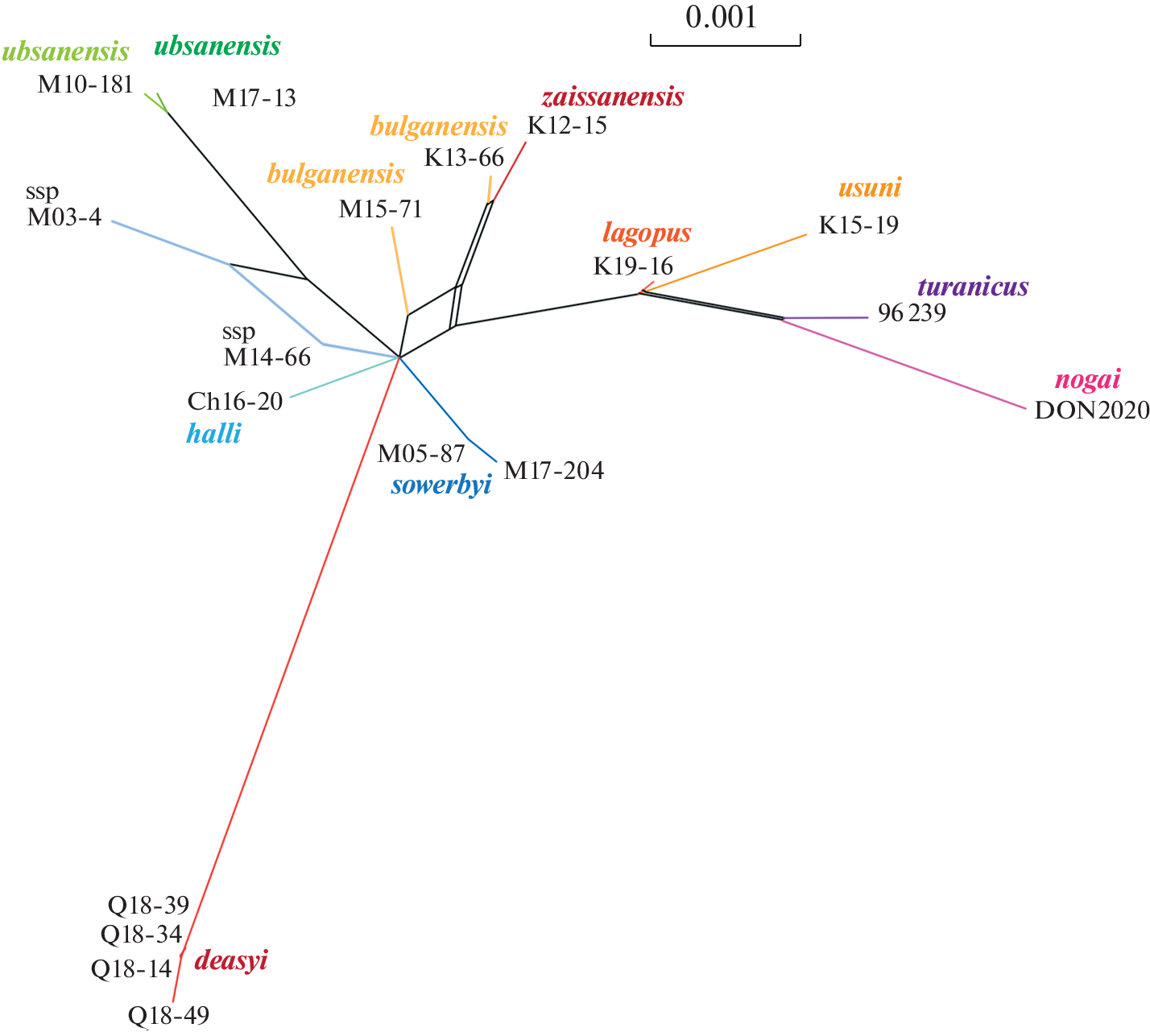 Мохноногий тушканчик Dipus sagitta длительное время считался единым политипическим видом. Ранее на основании митохондриальных и нескольких ядерных генов было выявлено высокое генетическое разнообразие D. sagitta и выдвинута гипотеза о существовании в его пределах нескольких видов. Однако небольшое число ядерных генов не позволило установить взаимоотношения между выявленными филогенетическими линиями. Мы значительно расширили набор используемых локусов ядерной ДНК, что привело к достаточно высокому разрешению филогенетического дерева для 10 форм D. sagitta. Выявленная структура вида в основном подтвердила характер и взаимоотношения линий мтДНК. Вместе с тем нельзя говорить о полном соответствии митохондриальной и ядерной филогений, часть генетических линий D. sagitta является, вероятно, продуктом ретикулярных процессов. Таким образом, этот таксон представляет собой сложный видовой комплекс D. sagitta sensu lato, в котором давно разошедшиеся линии не всегда репродуктивно изолированы.