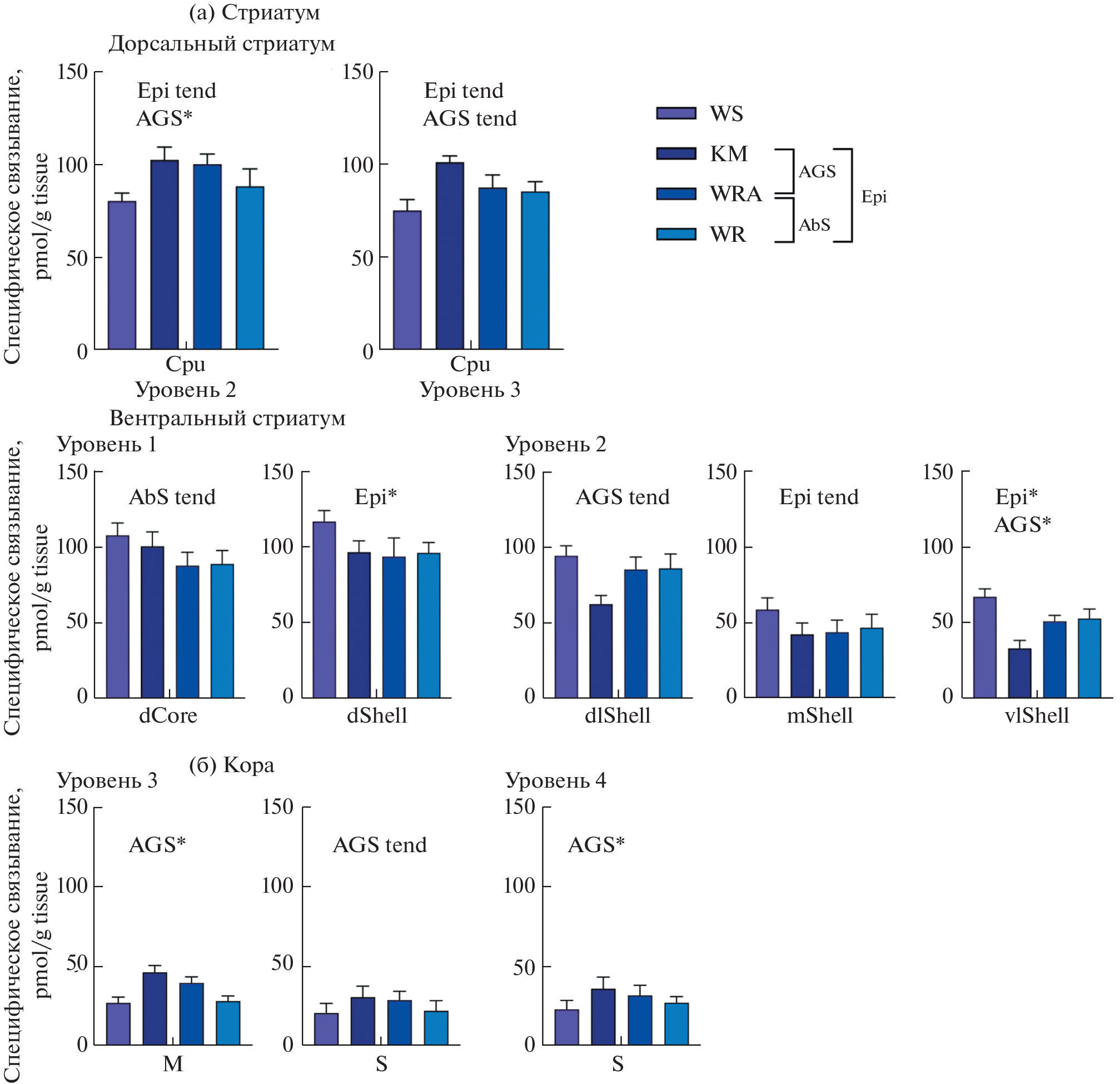 The study investigated D2-like dopamine receptor (D2DR) binding densities in cortex and striatum between rats with absence and/or audiogenic genetically determined epilepsy and normal Wistar rats by autoradiography. It was shown that D2DR binding density was lower in the dorsal and ventrolateral aspects of nucleus accumbens in epileptic vs non-epileptic rats. Additionally, audiogenic rats had higher motor, somatosensory cortex, and dorsal striatum binding as in contrast with non-audiogenic groups. This data suggests that there is a common neuronal circuit involved in the pathogenesis of generalized epilepsy of both convulsive and non-convulsive forms.