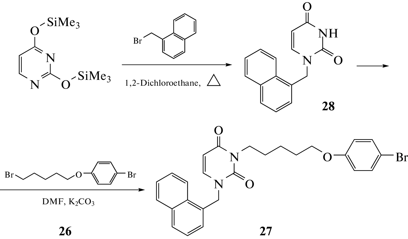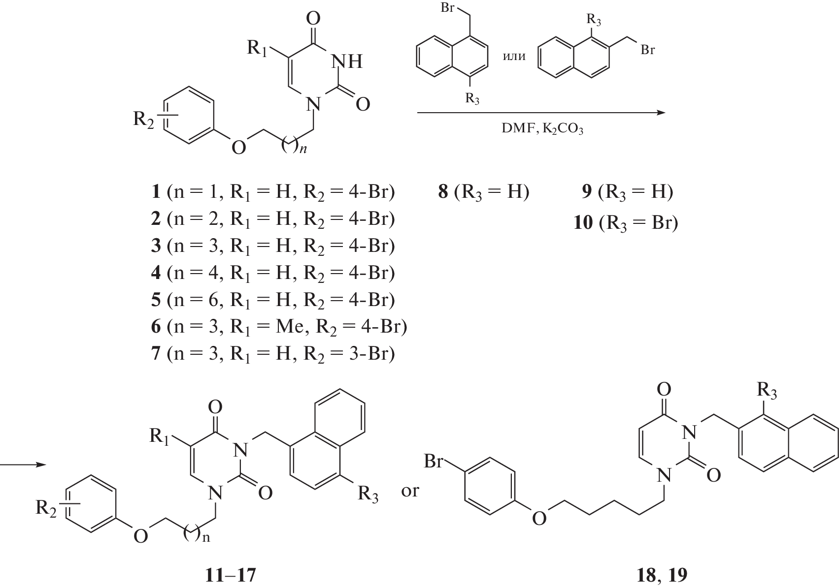 Синтез 1-[ω-(бромфенокси)алкил]-3-нафталенилметил-производных урацила и их аналогов как вероятных ингибиторов репликации цитомегаловируса человека