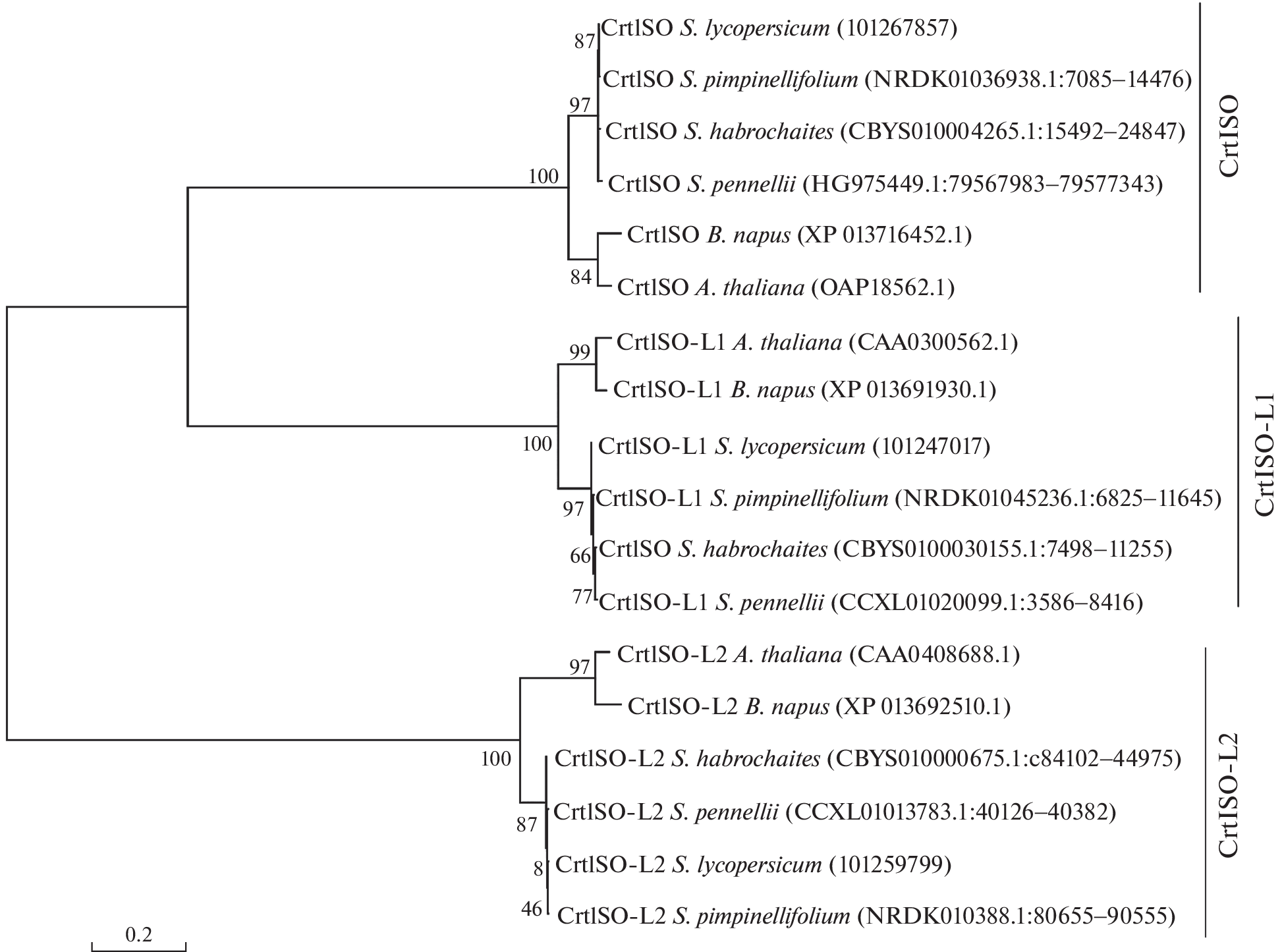 FUNCTIONAL DIVERSIFICATION OF THE CAROTENOID-CIS-TRANS-ISOMERASES CrtISO, CrtISO-L1, AND CrtISO-L2 IN TOMATO SPECIES (SOLANUM, SECTION LYCOPERSICON)
