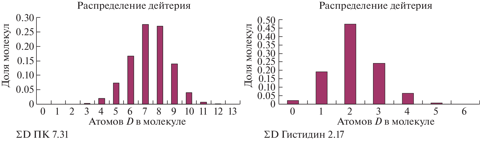 Изучено влияние температуры на эффективность введения дейтерия в пирролилкарнозин (ПК). В качестве источника дейтерия использовали газообразный дейтерий и тяжелую воду. Изотопный обмен проводили при использовании твердофазного и жидкофазного методов. Установлено, что для получения препаративных количеств меченого пирролилкарнозина лучше применять изотопный обмен с дейтериевой водой. При использовании твердофазного метода основная метка находится в пирроле. Включение дейтерия при более высокой температуре происходит более равномерно. Кроме того, использование дейтериевой воды позволило снизить количество немеченого изотопомера практически до 0% и получить препарат с выходом 70% и содержанием более 7 атомов дейтерия. Установлено, что содержание атомов дейтерия в веществе можно увеличить, проведя предварительную обработку реакционной смеси газообразным дейтерием. Этот подход открывает дополнительные возможности при получении высокомеченных соединений.