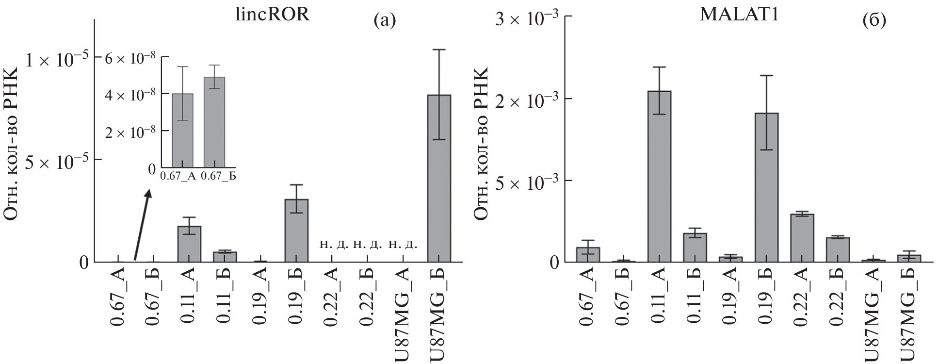 - Kovalenko T.F., Yadav B., Anufrieva K.S. et al. // Functions of long non-coding RNA ROR in patient-derived glioblastoma cells. Biochimie. 2022. V. 200. P. 131–139.