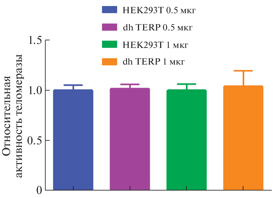 Telomerase is a ribonucleoprotein complex, the main components of which are telomerase RNA and reverse transcriptase. Previously, it was shown in our laboratory that human telomerase RNA contains an open reading frame, starting at adenine in position 176. The open reading frame encodes the hTERP protein, and the deletion of nucleotides 184–188 of human telomerase RNA disrupts the open reading frame and leads to the absence of hTERP. Human telomerase RNA has a conserved structure, changes in which affect telomerase activity. In this work, we have shown that the deletion of nucleotides 184–188 of telomerase RNA does not affect the functioning of telomerase.