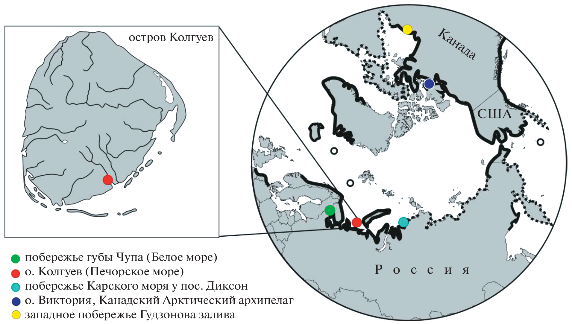 На о. Колгуев обнаружены две линии панцирных клещей, морфологически соответствующие циркумполярному виду Ameronothrus nigrofemoratus (acari, oribatida), но генетически различающиеся на уровне видов