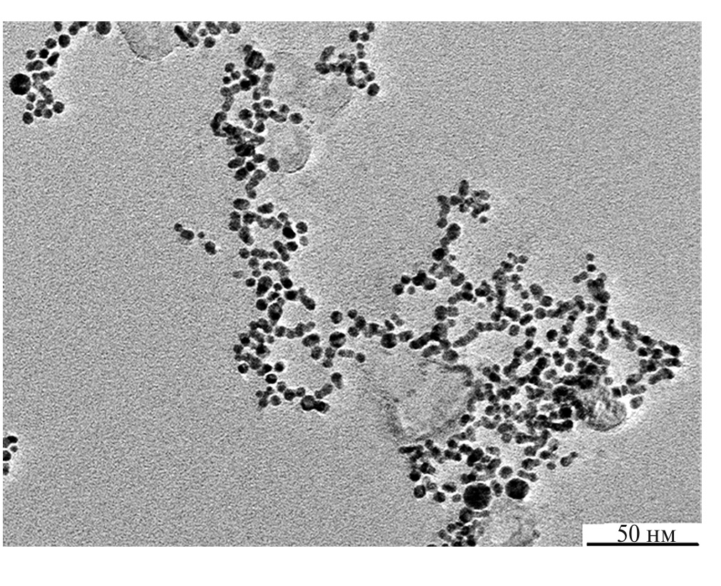 Рис. 1. Изображение наночастиц Au, полученное с помощью просвечивающей электронной микроскопии.