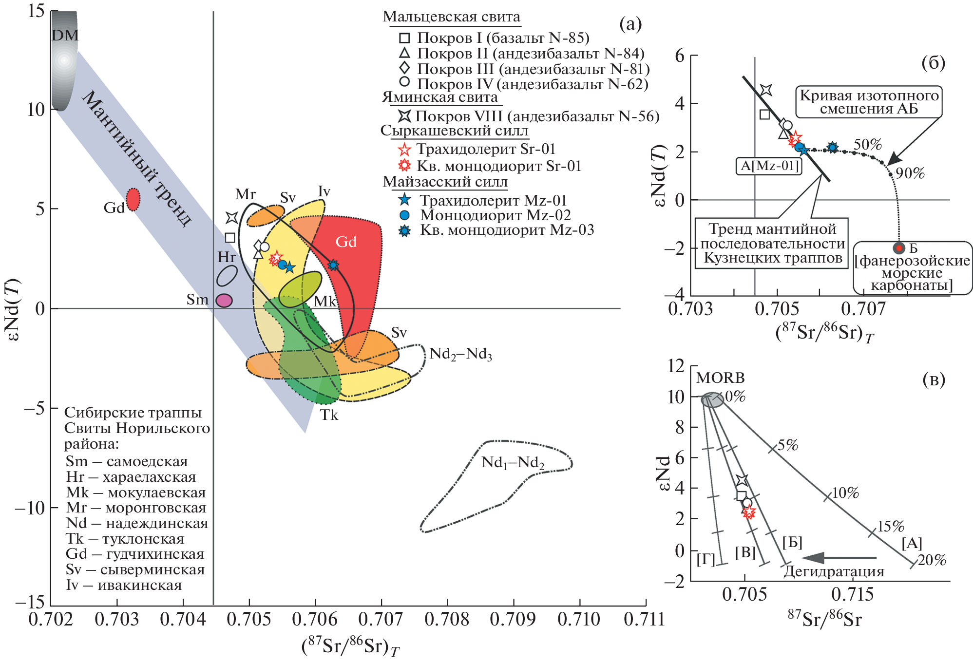 - Sharma M., Basu A.R., Nesterenko G.V. Temporal Sr-, Nd- and Pb-isotopic variations in the Siberian flood basalts: Implications for the plume-source characteristics // Earth Planet. Sci. Lett. 1992. V. 113. № 3. P. 365–381. https://doi.org/10.1016/0012-821x(92)90139-m