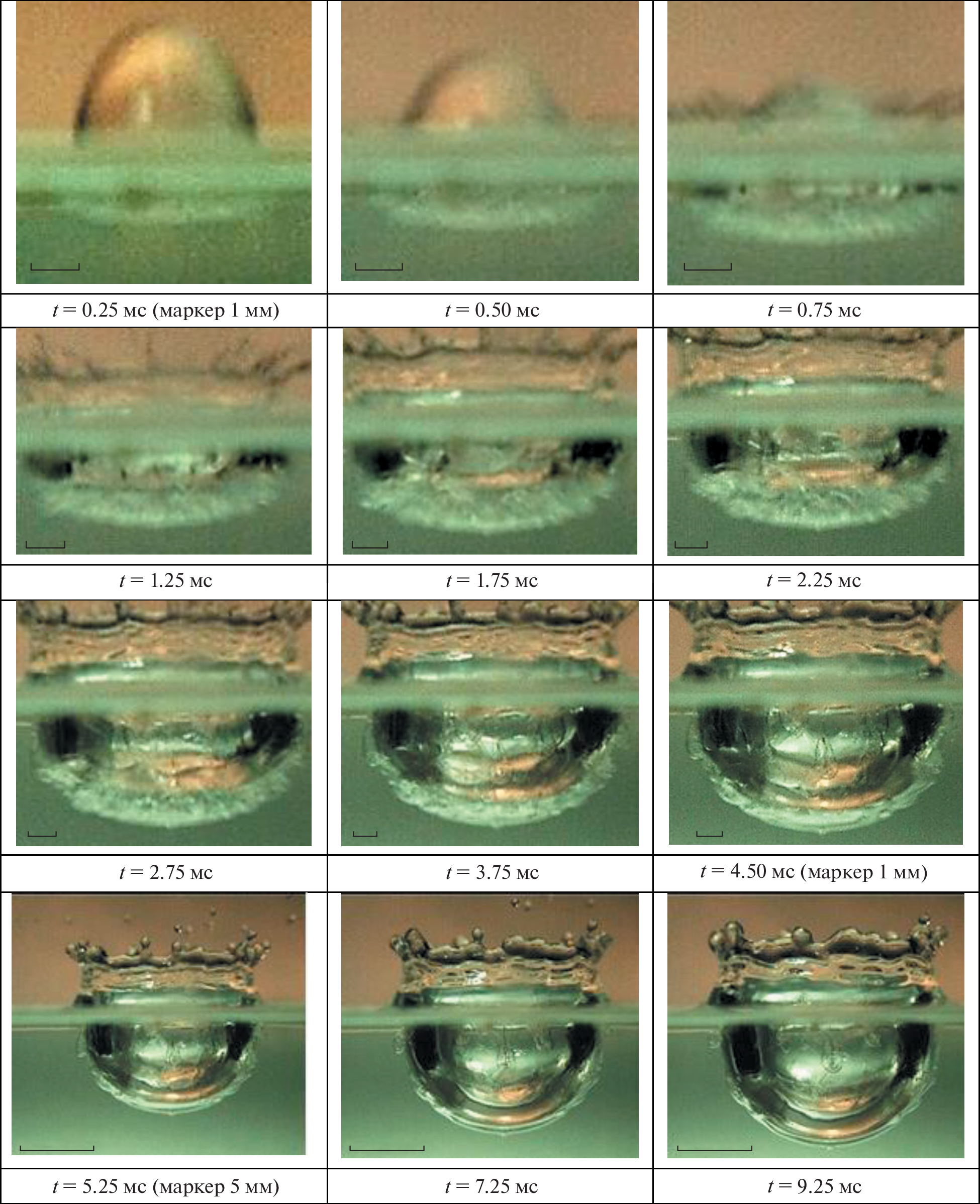 - Cai Y.K. Phenomena of a liquid drop falling to a liquid surface // Experiments in Fluids. 1989. V. 37. P. 388–394. https://doi.org/10.1063/1.857581