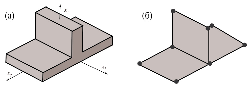 Рис. 1. Трехмерное (a) и двумерное (б) сочленения.